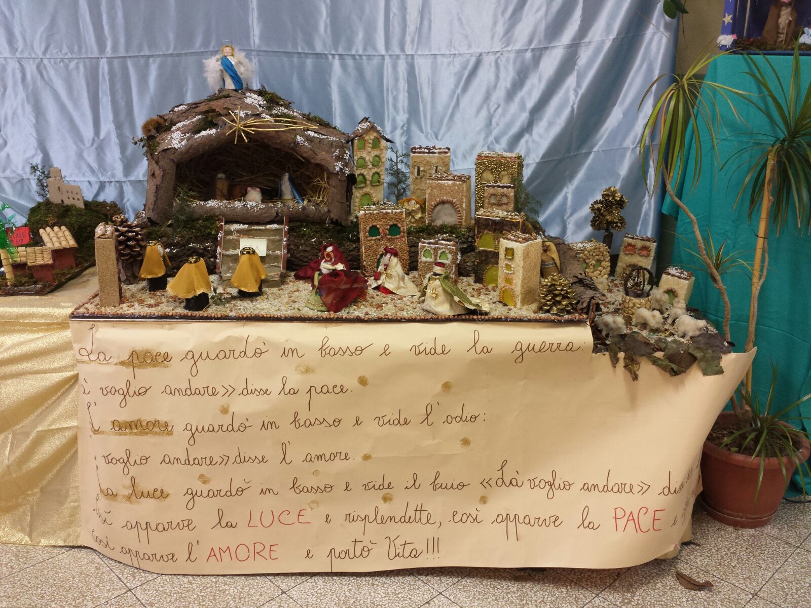 Da martedì 15 dicembre nella scuola primaria Salvatore Traina di Misilmeri è possibile visitare la mostra di presepi allestita dagli alunni di tutte le classi. I presepi sono stati realizzati in modo artigianale utilizzando materiale di riciclaggio: dalla corda al legno, dalla pietra alla carta, dai legumi alla plastica, dal sughero a pezzetti di ferro, dalla stoffa al muschio, dai gusci di uovo alla zucca, dalle calze sfilate alla spugna naturale, dalla tempera dei colori ai giocattoli riciclati e tanto altro ancora, che con una dovizia di dettagli riescono a meravigliare e a stupire tutti. La visita a questa mostra deve essere fatta con calma per scoprire l'accuratezza dei dettagli, la perfezione dei particolari i quali hanno come finalità lo sviluppo della creatività, dell'inventiva e trasmettere agli altri un messaggio di rinascita, di speranza e di gioia. La mostra, allestita nell'aula biblioteca, è visitabile tutti i giorni dalle ore 8:30 alle ore 13:00 sino al 21 dicembre. Dal 22 dicembre i presepi saranno messi in mostra presso la Chiesa Madre " San Giovanni Battista" di Misilmeri. La cittadinanza è invitata a visionarli.
