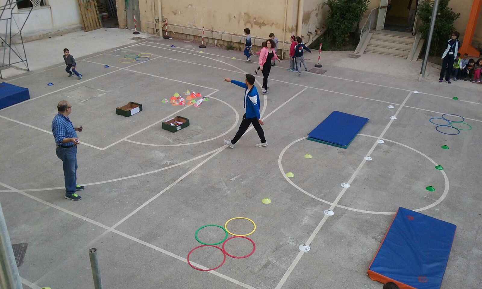 nel cortile della scuola, dove gli alunni e gli insegnanti coinvolti
