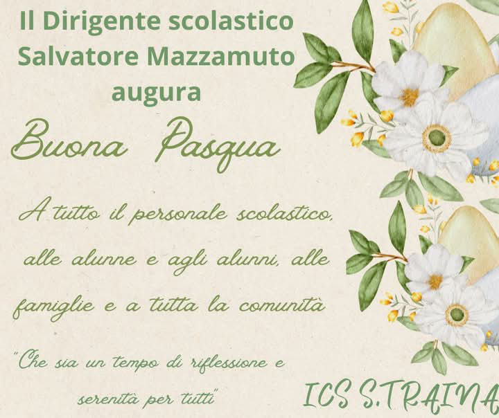Si coglie l’occasione per formulare i più sentiti e fervidi auguri di una SANTA PASQUA, di pace e serenità a tutto il personale in servizio nella scuola, alle famiglie e all’intera comunità scolastica.