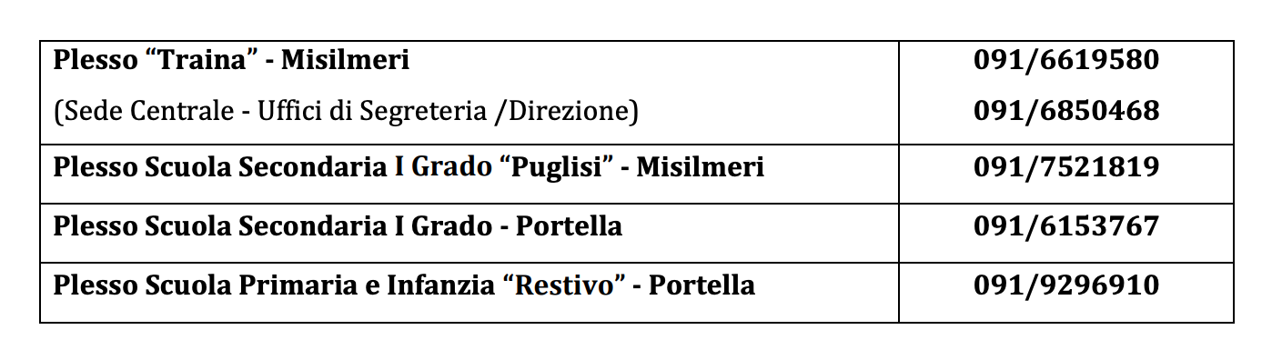 I precedenti numeri telefonici dell’Istituto sono stati dismessi e sono state attivate le seguenti nuove linee telefoniche