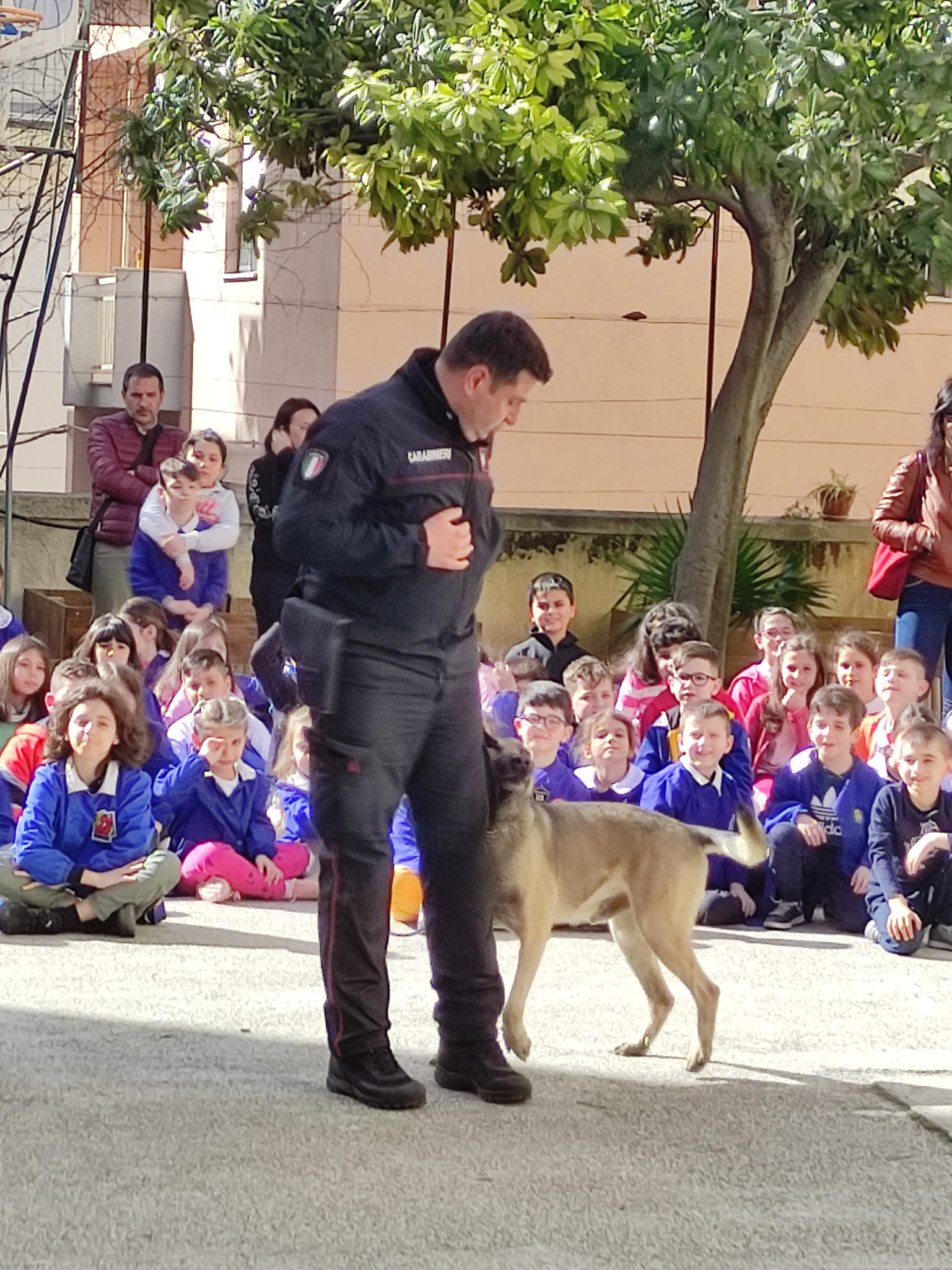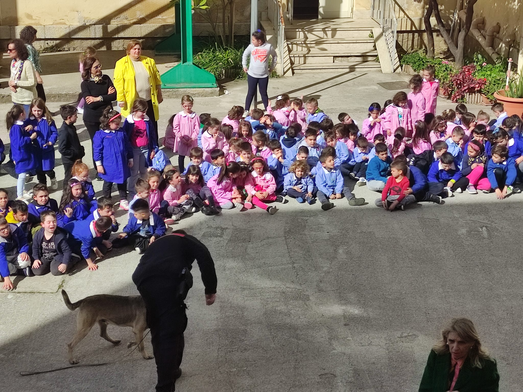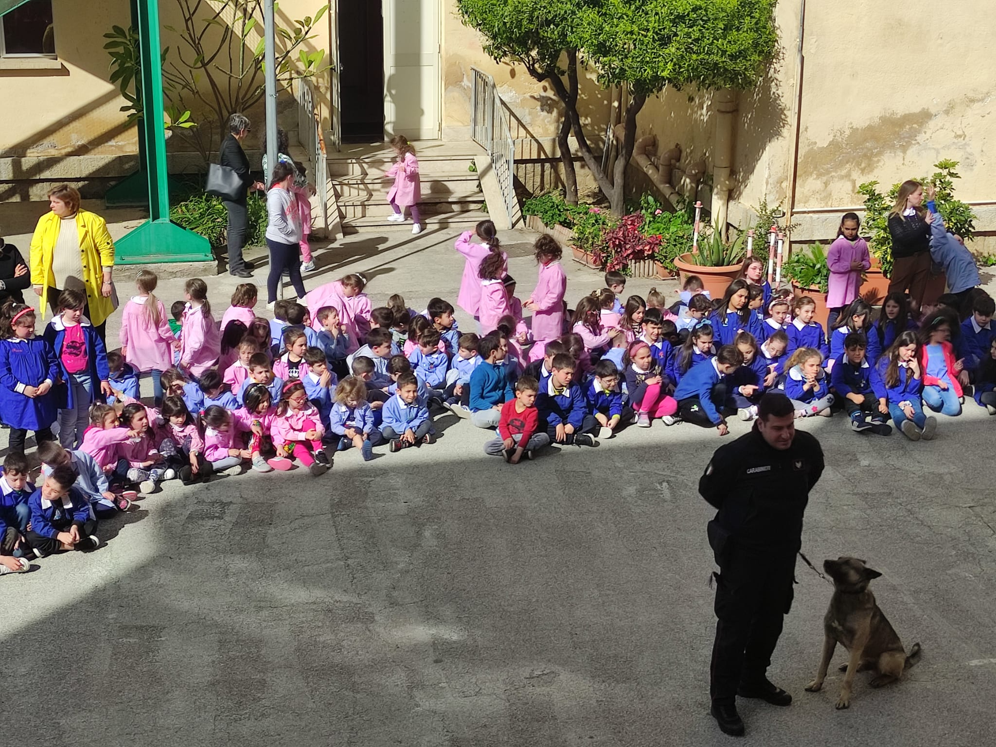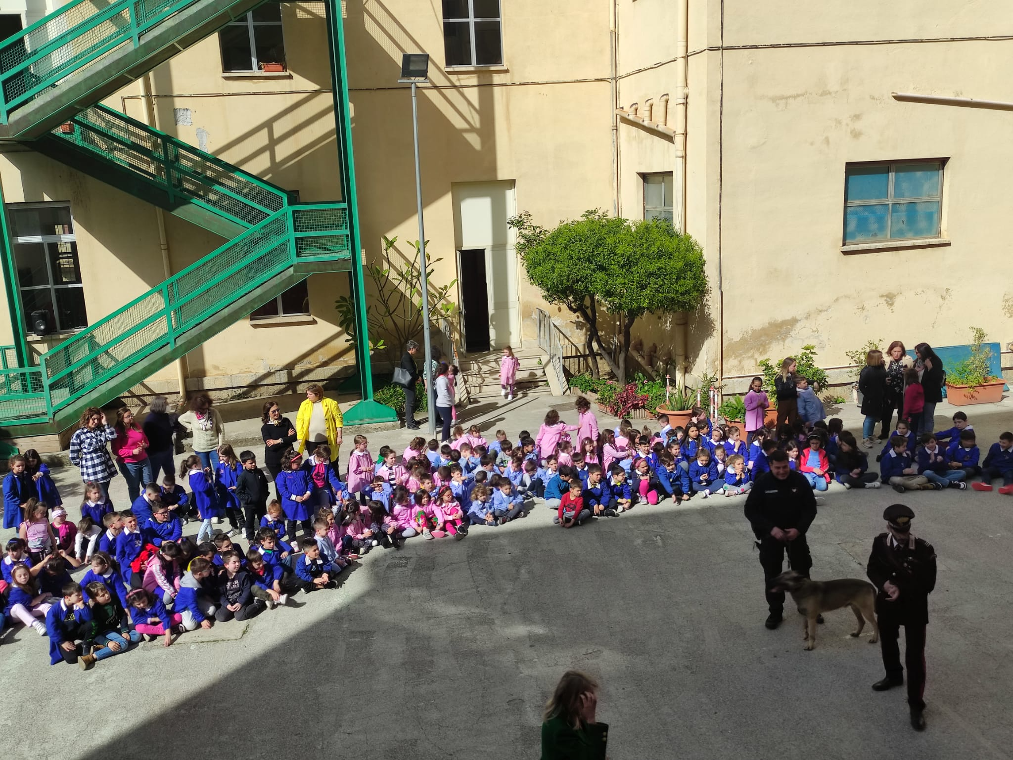 Inoltre Giovedì 13 Aprile presso il cortile del Plesso Traina ha avuto luogo un’esibizione del Gruppo cinofilo dei Carabinieri.
