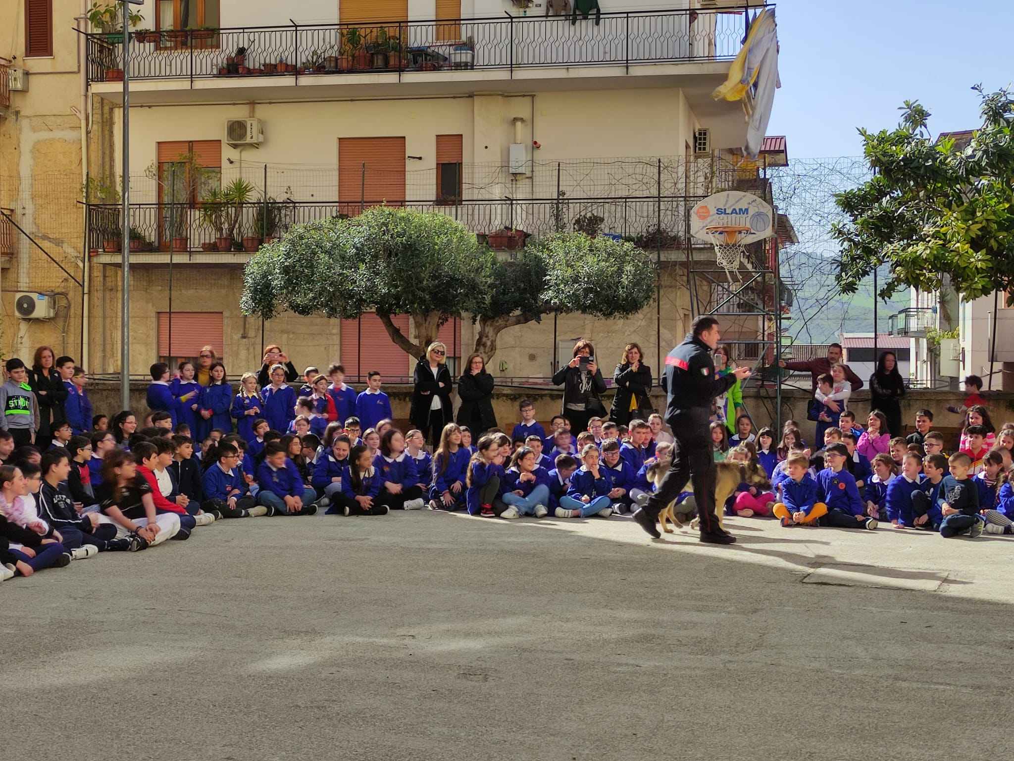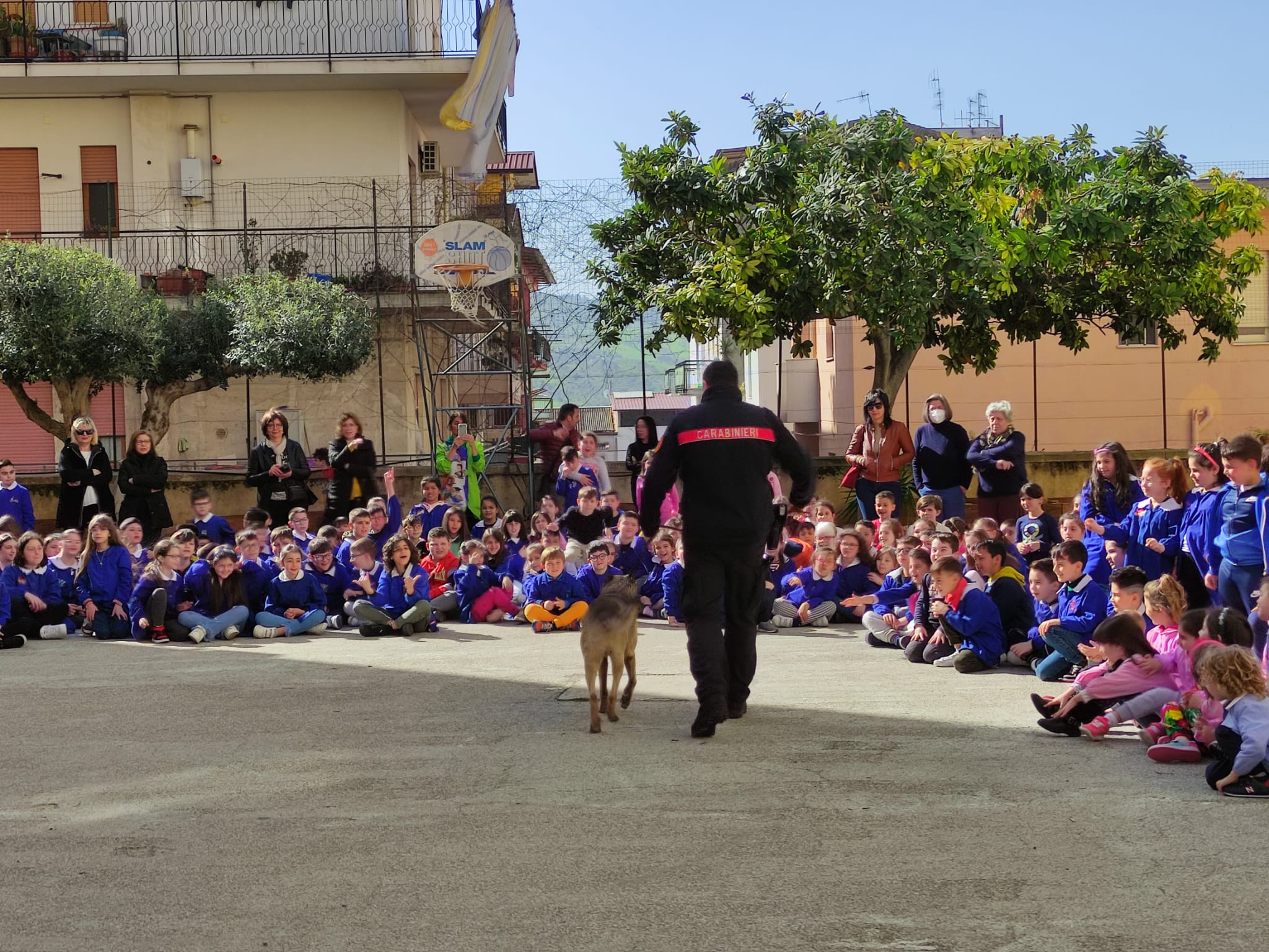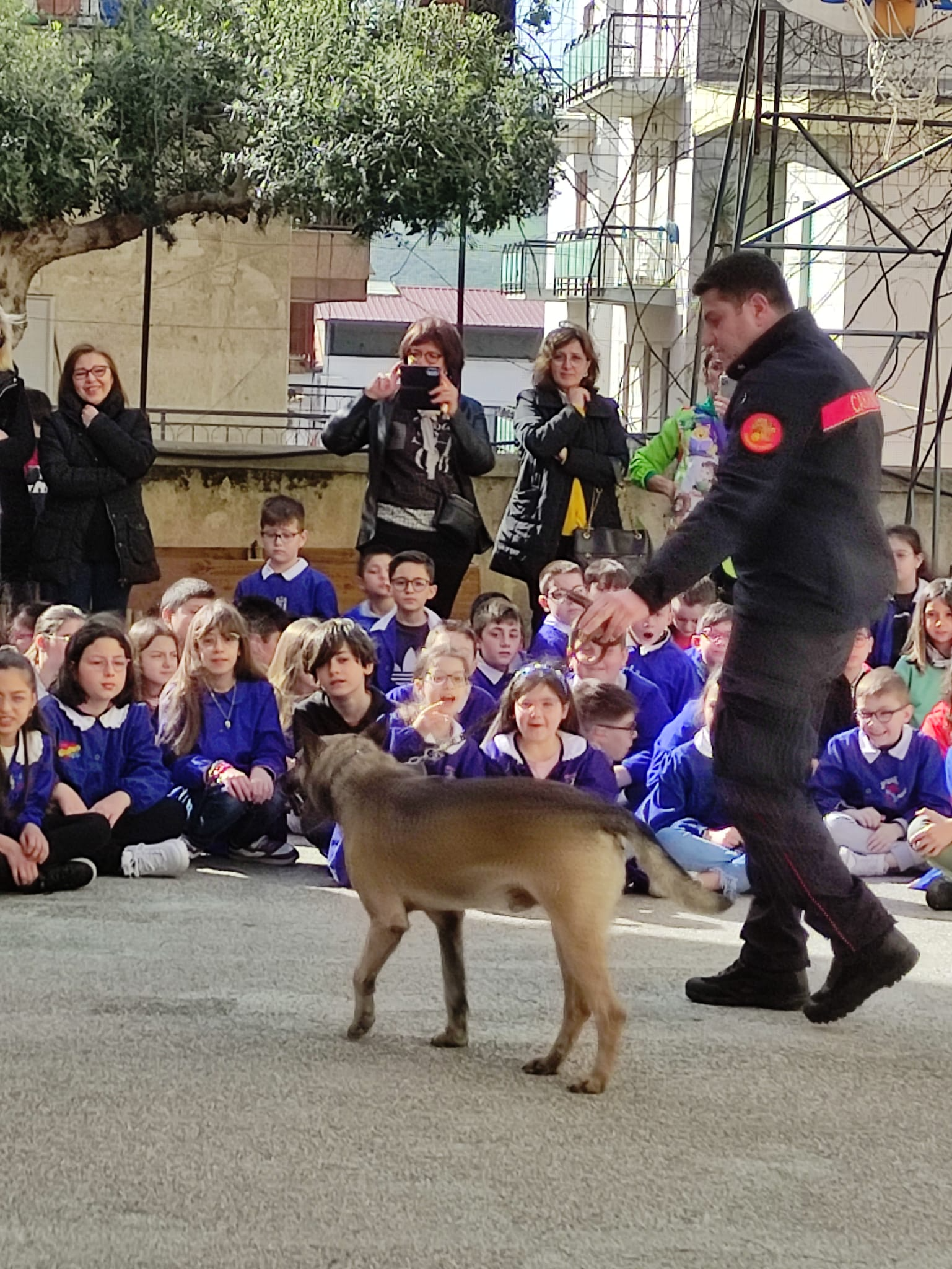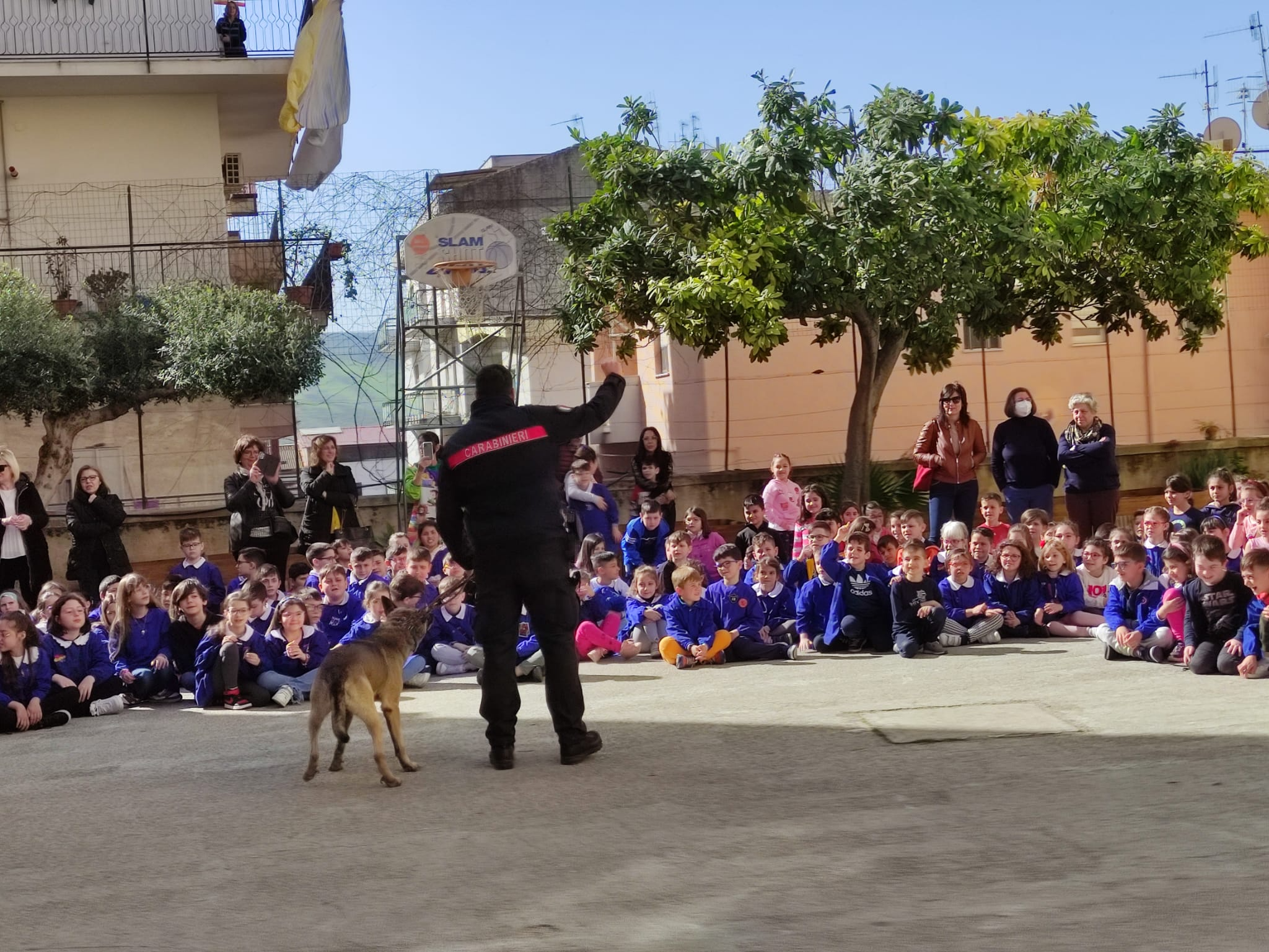 Inoltre Giovedì 13 Aprile presso il cortile del Plesso Traina ha avuto luogo un’esibizione del Gruppo cinofilo dei Carabinieri.