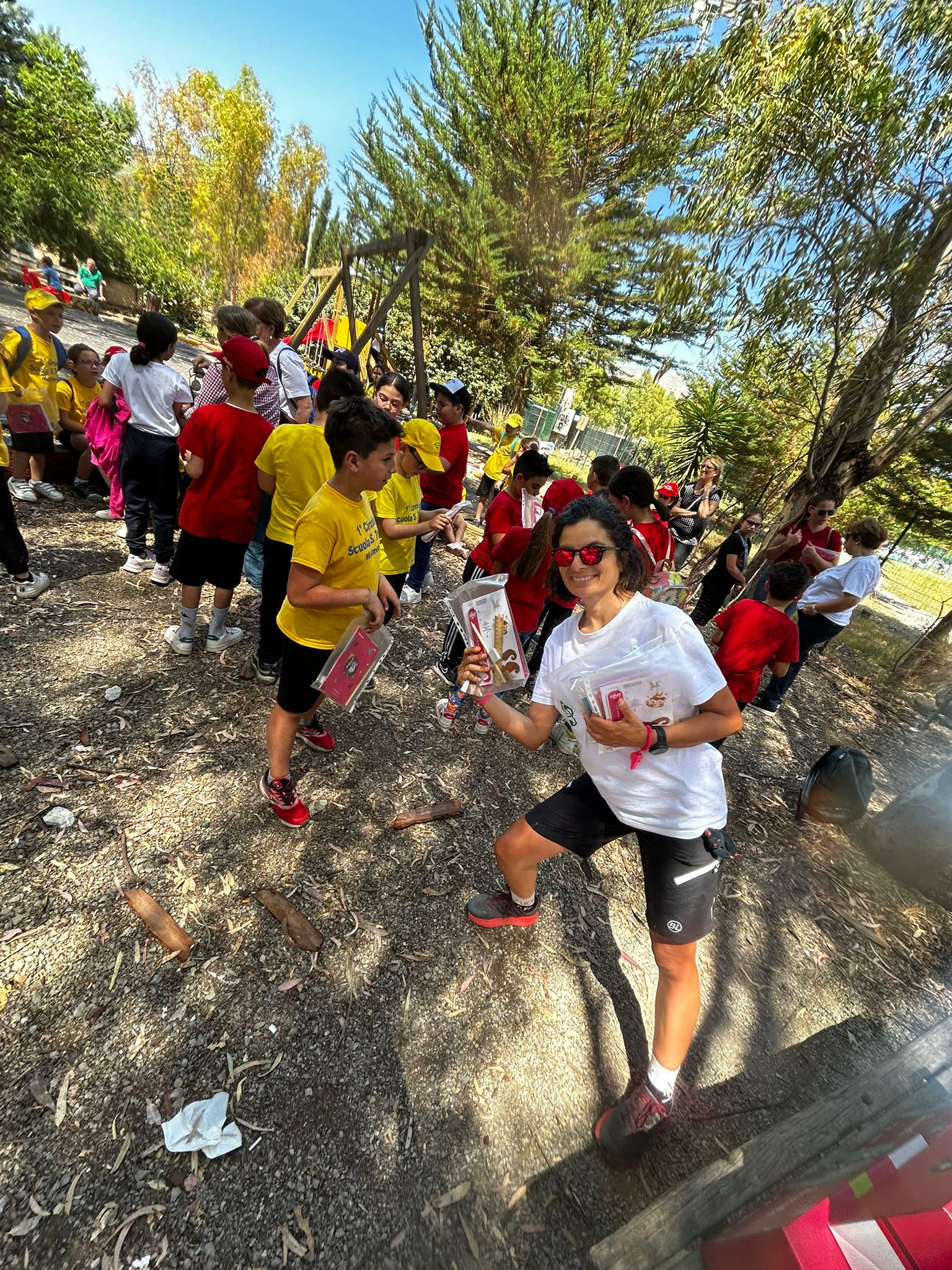 I bambini hanno ricevuto a fine manifestazione un gadget sponsorizzato da #enel, #giroditalia, #gazzettadellosport precedentemente richiesto dalla scuola.